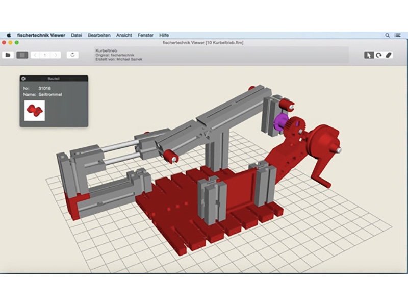 | フィッシャーテクニックのブロックをCADデータに、オリジナルモデルを構築する際、組み立て図を作成し、シュミレーターで動作検証することで確実性を高めます。 |