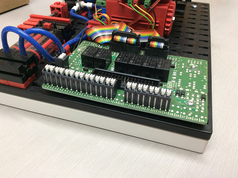 | トレーニングモデルには写真のようなインターフェースボードが付属しています。 |