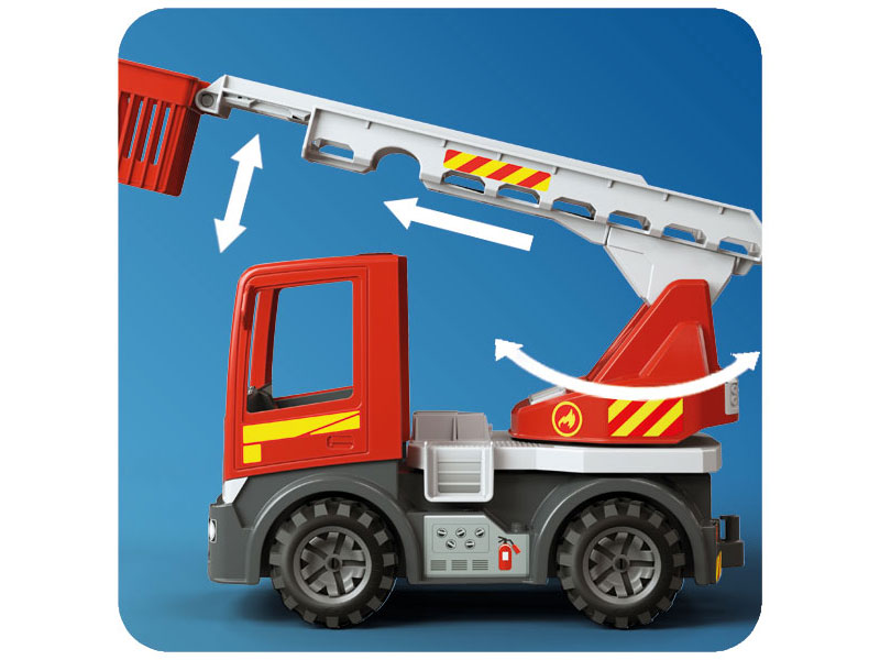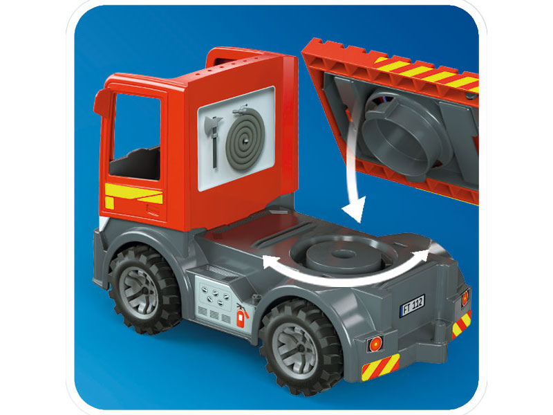 回すだけで簡単にパーツを脱着でき、4タイプの消防車を作ることができます。