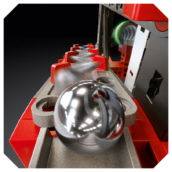 マーブル・ボールは、いくつかのイベント・ギミックを通過しながら高速に進んでいきます。新設計の”テープ・ベルトコンベア”は、手回し、またはオプションのモーターにより駆動します。