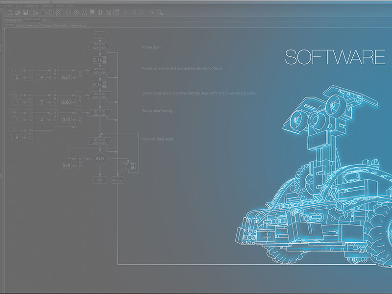 ”TXTコントローラ”には、デュアルプロセッサARM Cortex-A8(32ビット/ 600MHz)+ Cortex-M3、カラー2.4インチタッチディスプレイ、Wi-Fi / Bluetoothモジュール、メモリ拡張用マイクロSDカードスロット、IRレシーバダイオード、内蔵スピーカー、4つのモータ出力、8つのデジタル/アナログ入力、4つの高速カウント入力。そして、複数のTXTコントローラをリンクすることができます。