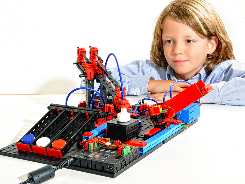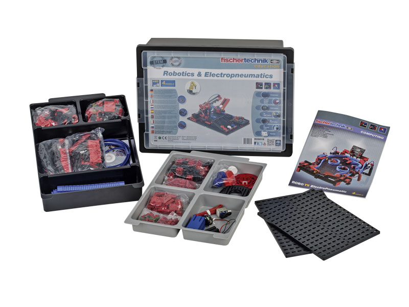 実際に空圧機器とロボットを構築し、プログラミングするための理想的なキットです。 エレクトロニューマティックスと真空技術のテーマは、圧縮空気を作り出すコンプレッサー、シリンダー、電磁弁、色選別センサーなどを用いて、フリッパーモデル、障害物コースロボットなどの具体的な事例より説明されています。さらに、PCを使用した制御へ拡張することも可能です。