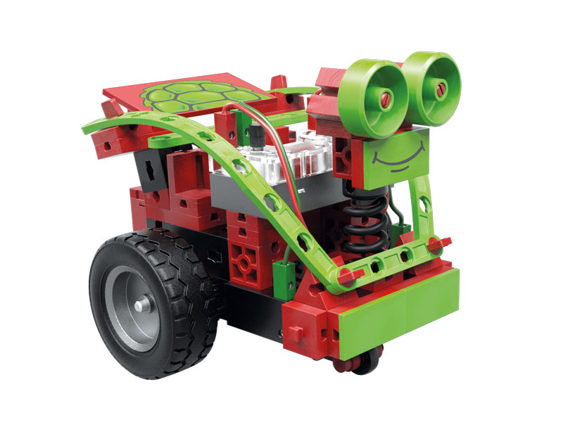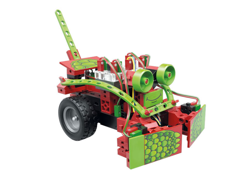 Robotics Mini Botsは、フィッシャーテクニックロボットのラインを始めるのに最適なキットです。 モーター、赤外線トレールセンサー、リミットスイッチなどのアクチュエーターとセンサーを使用して、5つのロボットモデルを体験できます。 ロボットは、ラインをたどり、障害物を避けることができます。付属のコースシートを使いことで動作をすぐに確認できます。Mini Botsのプログラムは、Roboticsモジュールにあらかじめ複数のプログラムが書き込まれおり、切換スイッチにより動作を選択します。なので、プログラミングの知識を必要とする事なくロボットの世界を体験することができます。