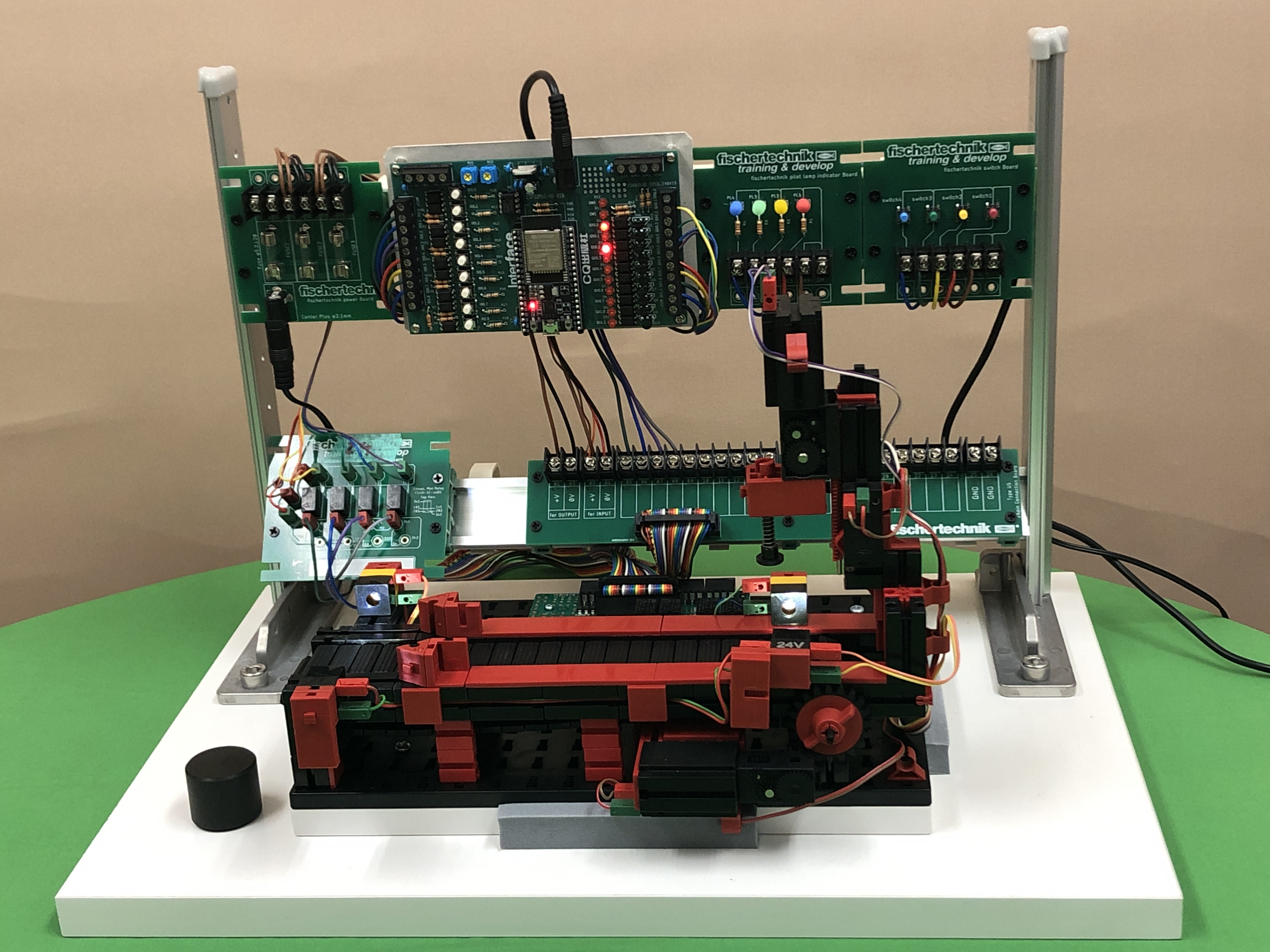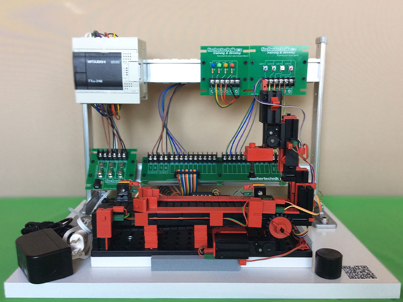 フィッシャーテクニックのトレーニングモデルとPLC(プログラマブル・ロジック・コントローラー)がセットになっている製品です。