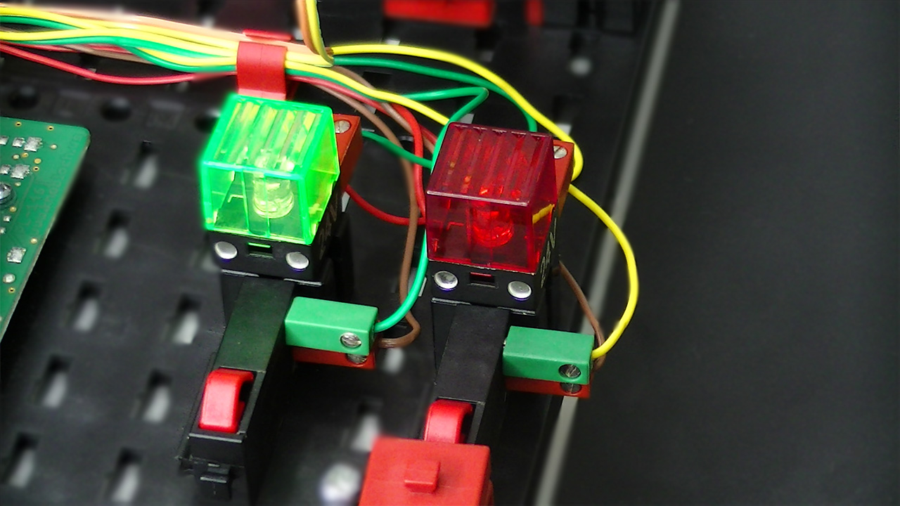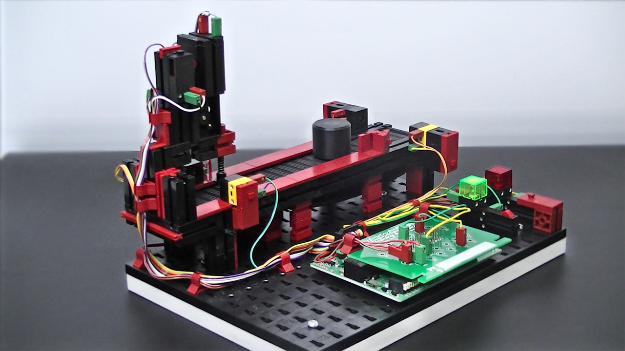 基本モデルのPunching Machine with Conveyor Belt 24Vをカスタマイズし、教育機関等での運用を考慮したパッケージングを提供いたします。基本モデルに対し、スイッチ入力を2つ、ランプ出力を2つ追加し、初歩のプログラミング体験をスムーズに行えるようにしました。また、これらのスイッチとランプは、より高度なプログラミングを体験する場合においても有効に機能します。さらに、教育機関等での運用を考慮し、収納ボックスを付属します。また、別途手配のPLCセットへの接続ケーブル1本。モデル・シュミレーション用ワークが1個付属します。